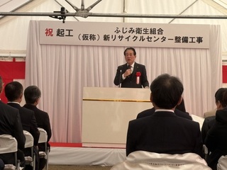 公開日 2026年2月6日 令和8年2月5日(木)起工式を執り行いました 澄み渡る青空の下、ふじみ衛生組合管理者(三鷹市長)・副管理者(調布市長)をはじめ、ふじみ衛生組合議会議員及び両市議会議長・副議長、地元協議会会長・副会長、施工関係者40名が出席し、(仮称)新リサイクルセンター整備工事の起工式を行いました。 工事は2月16日より着工し、令和11年3月竣工を予定しています。 地域の皆さまの生活環境に最大限の配慮をしつつ、最後まで無事故・無災害で進められるよう努めてまいります。